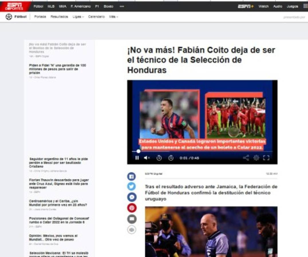 3 / 20CNN - 'Honduras se ha quedado sin técnico', tituló el portal de noticias norteamericano. -