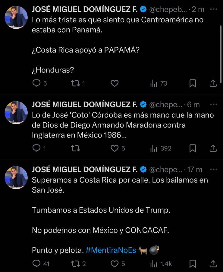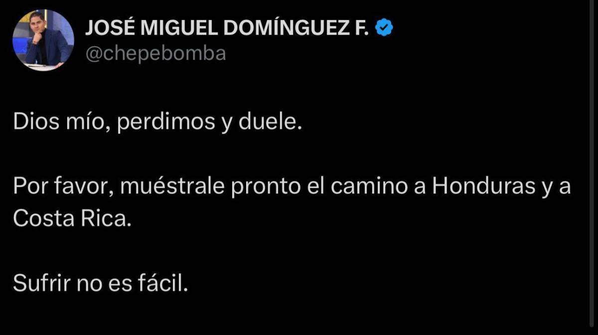 11 / 18Jose Miguel Domínguez, periodista de Panamá y más conocido como Chepebomba, se acordó de Honduras. "Por favor, muéstrale pronto el camino a Honduras y a Costa Rica. Sufrir no es fácil".