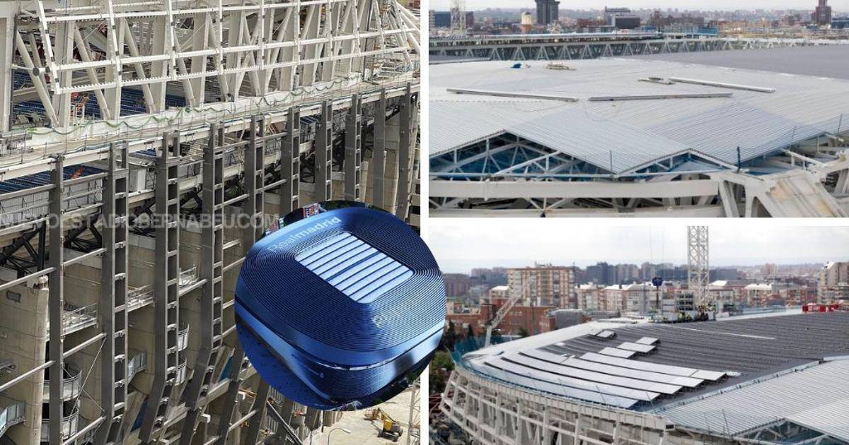 Mientras el Real Madrid está de vacaciones, los trabajos en el Santiago Bernabéu no se detienen y uno de los avances más significativos se encuentra en el techo del estadio.