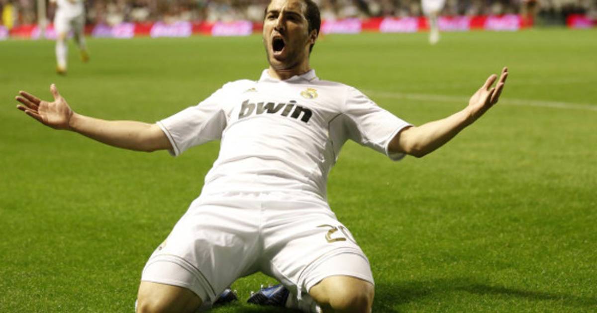 11 / 25El argentino Higuaín celebra con Xabi Alonso su gol. -