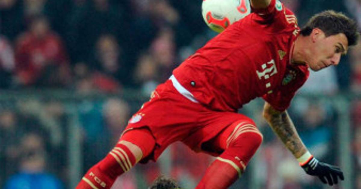 1 / 15El delantero croata Mario Mandzukic (arriba) y el centrocampista del Dortmund Marco Reus compiten por el balón durante la Copa de Alemania . -