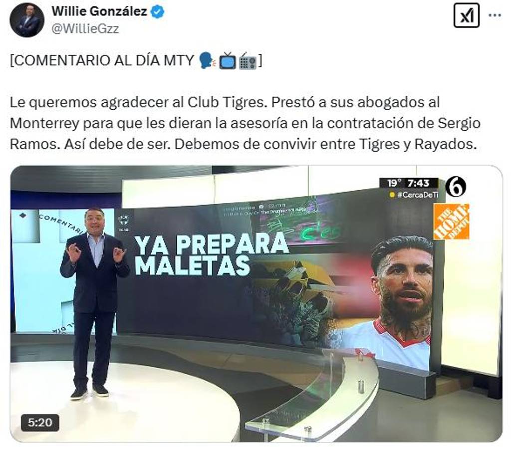 8 / 16“Le queremos agredecer al Club Tigres. Prestó a sus abogados al Monterrey para que les dieran asesoría en la contratación de Sergio Ramos”, asegura Willie González. “Así debe ser. Debemos convivir entre Tigres y Rayados”, añadió.