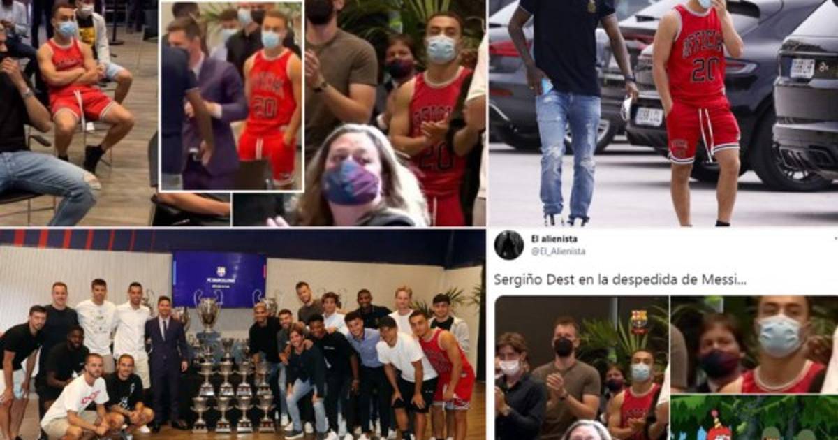 El lateral Sergiño Dest acaparó todas las miradad con su vestimenta en la despedida de Leo Messi.