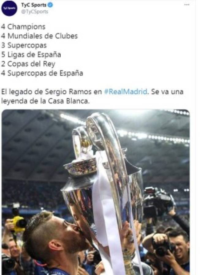 El adiós de Sergio Ramos del Real Madrid ha causado un efecto mediático en el fútbol mundial quien recuerda al español como lo que es: una leyenda blanca. Esto es lo que dicen los medios y algunos personajes de la despedida del veterano de 35 años.