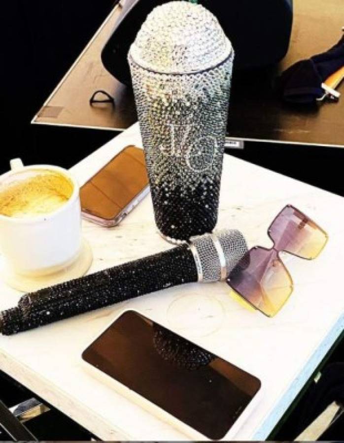 6 / 14Jennifer López presume en sus redes sociales sus implementos que le acompañan cada vez que hace sus ensayos. Tiene micrófono propio y el recipiente en donde carga sus bebidas tiene una decoración especial. -