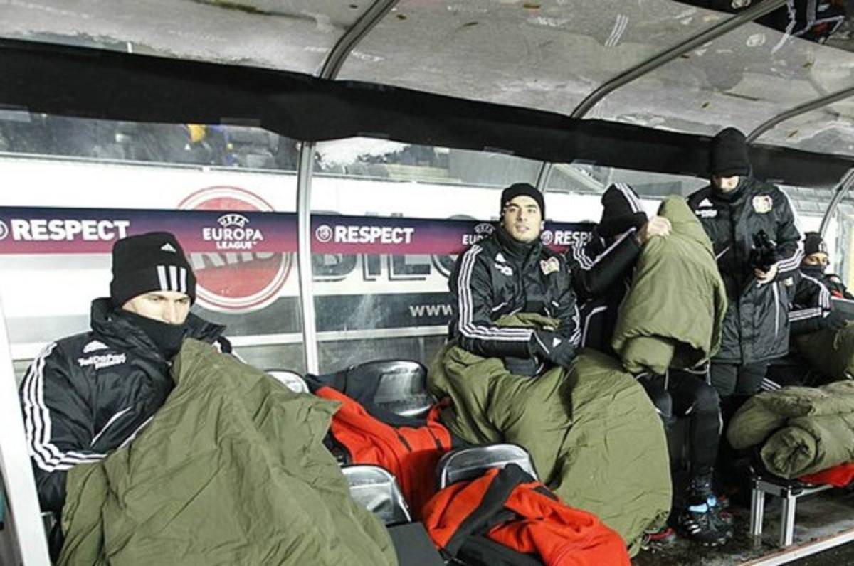 5 / 112010 | El frío durante los partidos, es peor para los que están en el banquillo que para los que juegan. Si no que se lo pregunten a los jugadores del Bayer Leverkusen que tuvieron que ir a jugar contra el Rosenborg. La temperatura bajó hasta los -15 grados, dejando congelados a los del banquillo. -