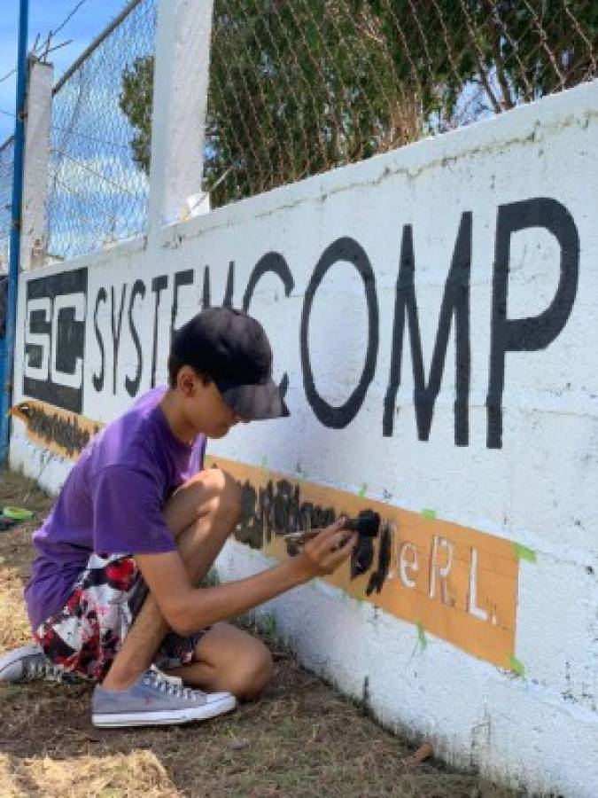 16 / 18Este chico contribuyó a su progenitor con el trabajo de pintura y diseño de las nuevas imágenes de los patrocinadores en la sede. -