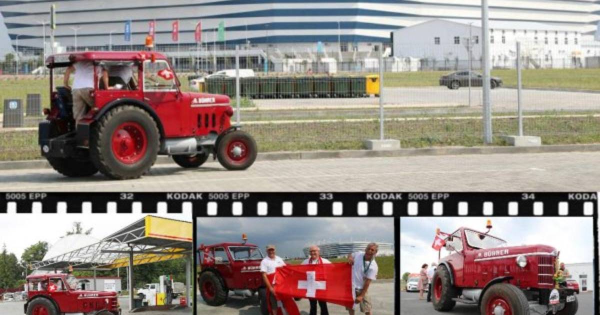 Tres amigos suizos tuvieron la brillante idea de trasladarse a la Copa del Mundo en Rusia en un tractor vintage.