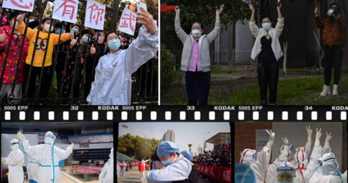 Así celebran médicos chinos en Wuhan tras el primer día sin casos de coronavirus