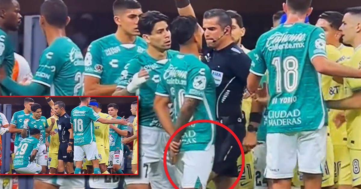Todo comenzó cuando el América había logrado el tanto del empate 1-1 y los jugadores de León le reclamaban al colegiado que la anotación se anulara por una mano de Reyes.