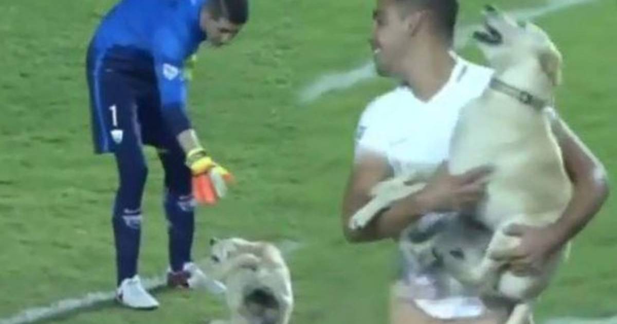 El portero mexicano Alejandro Palacios bromeó con el sabueso queriéndolo agarrar, pero no pudo, el partido durante varios minutos fue suspendido mientras el perro causó estragos.
