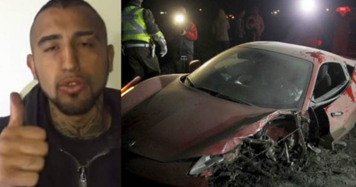 La estrella de la selección chilena, Arturo Vidal, fue detenido por las autoridades tras protagonizar un accidente con su Ferrari cerca de Santiago, en plena competencia de la Copa América, donde curiosamente quedaron campeones.