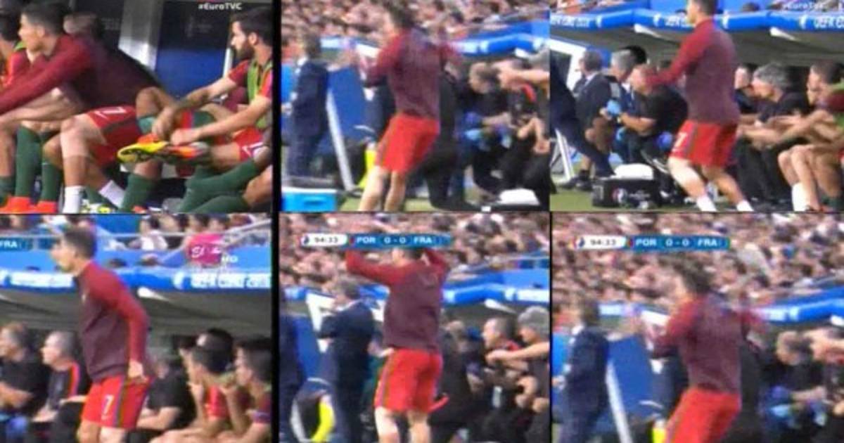 A Cristiano Ronaldo se le olvidó que estaba lesionado y fue captado hasta saltando en la banca durante el partido de Portugal y Francia en la final de la Eurocopa.