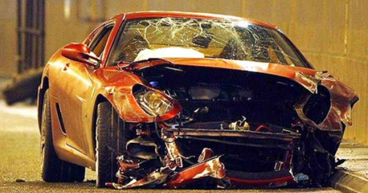 El jugador portugués estrelló su Ferrari contra un muro de protección de una carretera de Manchester. Ronaldo, que entonces jugaba en el Manchester United, destrozó la parte delantera de su vehículo.