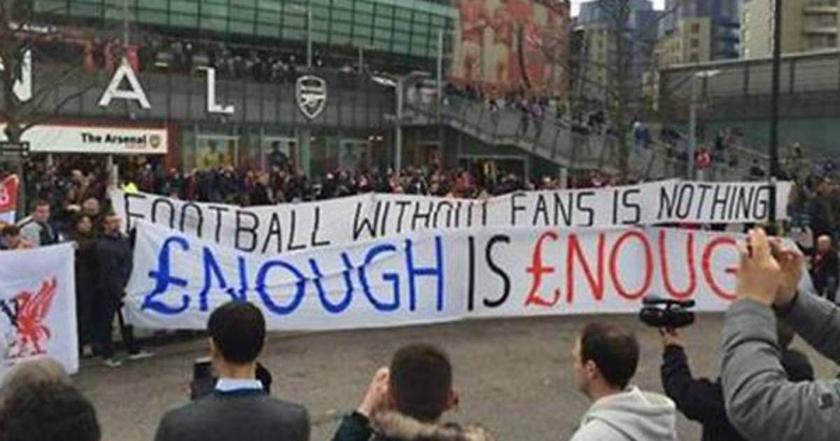 Asimismo, mostraron pancartas dentro y fuera del Emirates Stadium con lemas como: 'El futbol sin fans no es nada' y 'Suficiente es suficiente'.