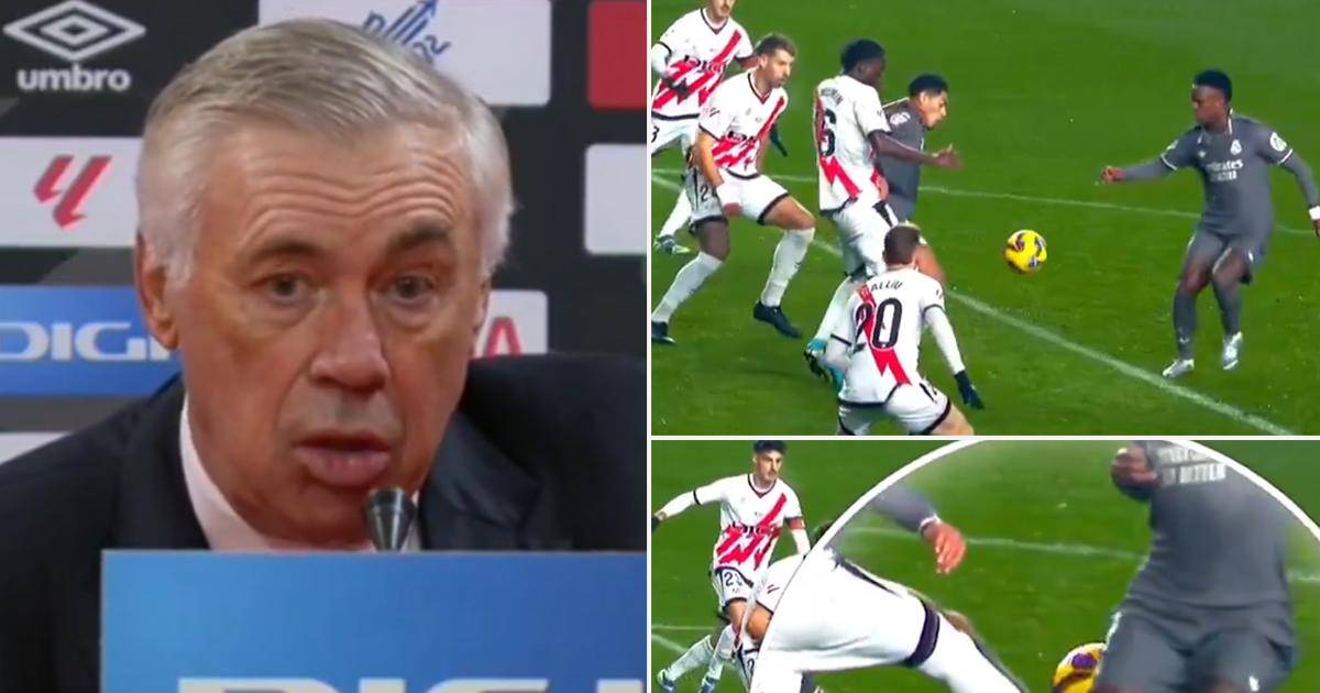 Carlo Ancelotti, técnico del Real Madrid, afirmó tras el empate ante Rayo en Vallecas que hubo un “penal muy claro” sobre el brasileño Vinicius que no fue señalado por el colegiado Juan Martínez Munuera.