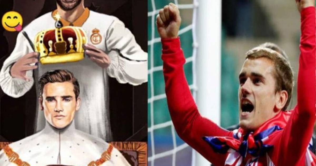 El francés publicó una imagen con él y con Sergio Ramos como protagonista, donde 'Grizzi' sale sentado en una especie de trono y el capitán del equipo merengue colocándole una corona.