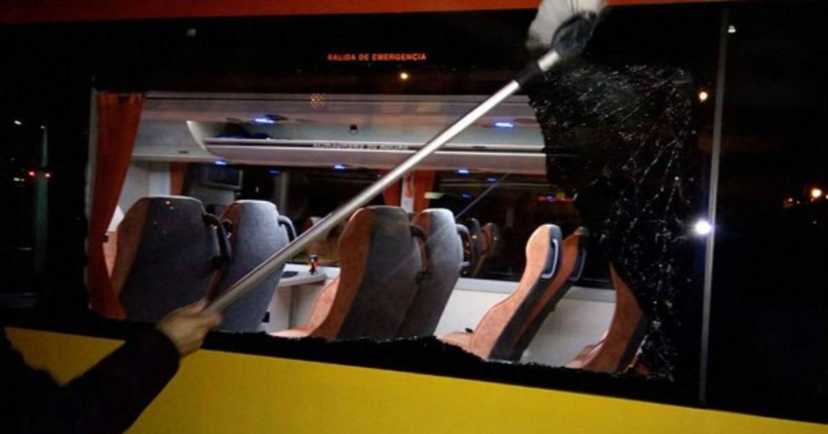 Le quebraron varios vidrios, pero ningún aficionado de los que se conducía resultó con daños físicos.