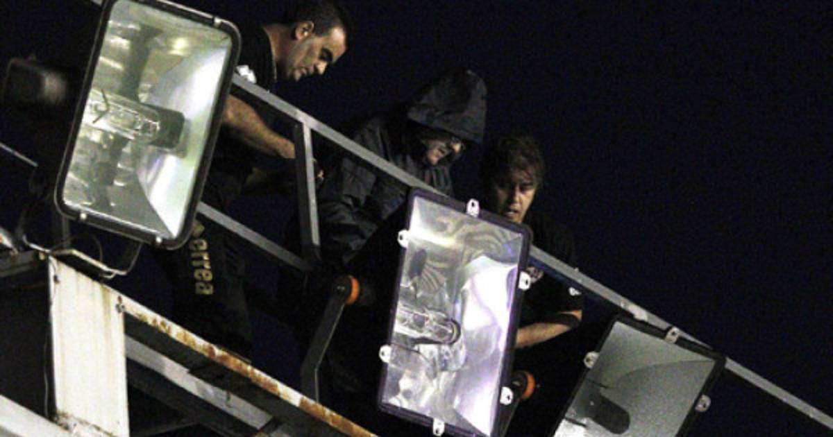 Los operarios del club local trataron de reparar contrarreloj los cables cortados para intentar que el partido se jugara este domingp, algo que fue imposible.