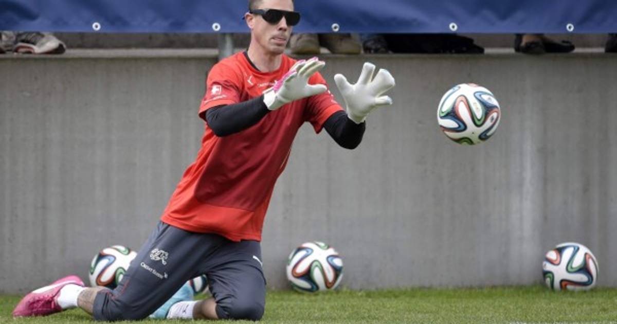 Benaglio durante los ensayos lo hace co lentes de alta técnología para mejorar su rendimiento en la portería.