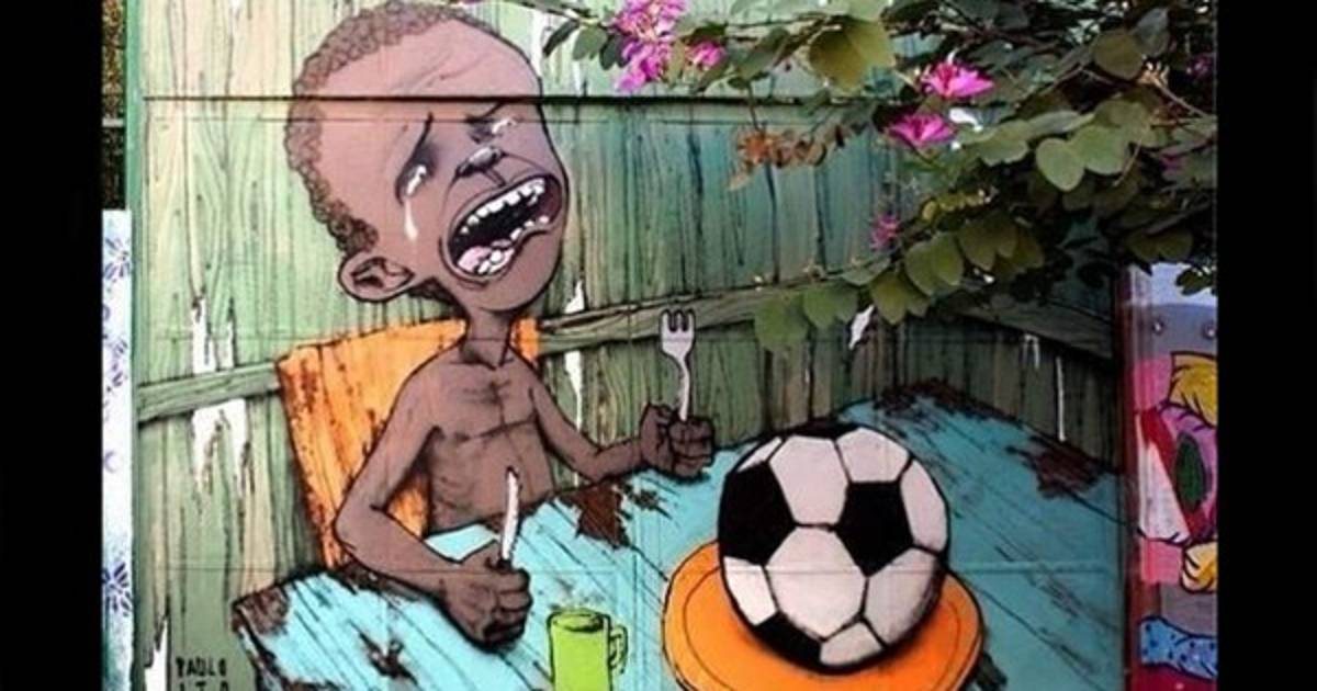 La pintura es una muestra del rechazo hacia el evento deportivo por una parte de la sociedad brasileña, debido a los millones de dólares que ha costado su realización, mientras que muchas familias se encuentran en condiciones de pobreza.