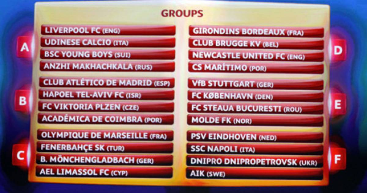 GRUPO A: Liverpool (ING) Udinese (ITA) Young Boys (SUI) Anzhi (RUS)