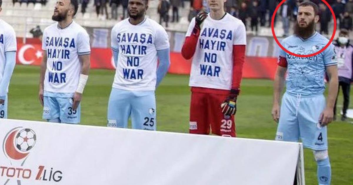 Sin embargo, Aykut Demir, capitán del Erzurumspor de la Segunda División de Turquía, ha sido tendencia tras su imagen antes disputar un partido, donde todos los jugadores saltaron al campo con una camiseta de “no a la guerra”... pero él no.