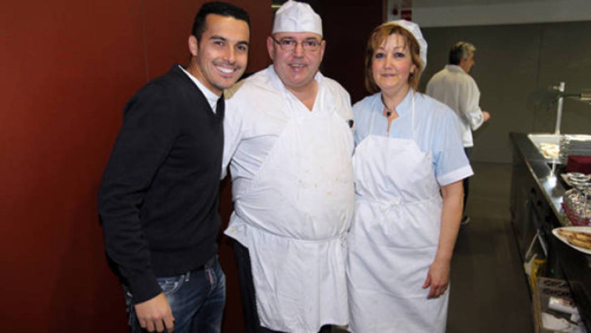 Al mismo tiempo, los futbolistas surgidos de La Masia han aprovechado para saludar a sus cocineros y demás trabajadores, con quien tantas horas compartieron.