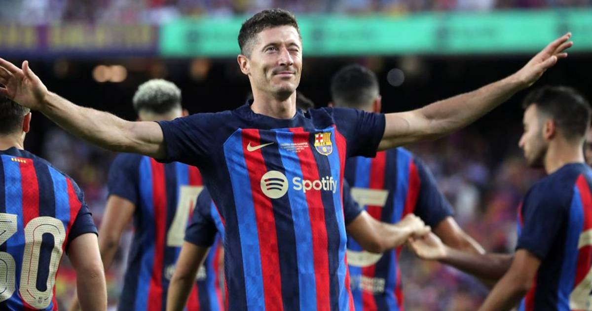 2’ Raphinha está jugando por el costado izquierdo y Dembélé por el derecho. Lewandowski es el referente en punta.