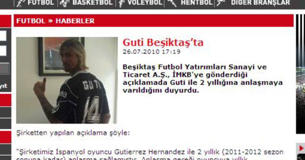 El portal web del Besiktas publicó en su portada una enorme foto del futbolista para anunciar que Guti ya es uno más de las 'Águilas' de Estambul.