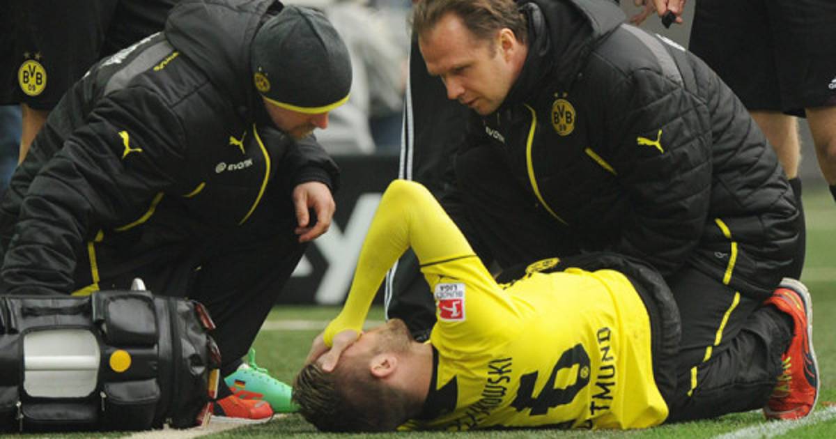 Blaszczykowski se lesionó tras un lance con un adversario. Tuvo que ser reemplazado en el minuto seis por el atacante gabonés Pierre-Emerick Aubameyang.