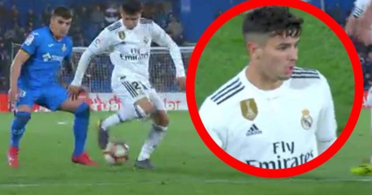 De espalda y con dos toque Brahim se deshizo de su rival Mauro Arambarri que quedó retratado tras la espectacular jugada del futbolista del Real Madrid.