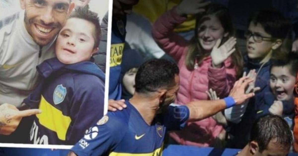 El delantero caminaba junto a sus compañeros rumbo al vestuario para descansar, pegado al alambrado, un pequeño con síndrome de Down saludaba a sus ídolos que iban bajando las escaleras.