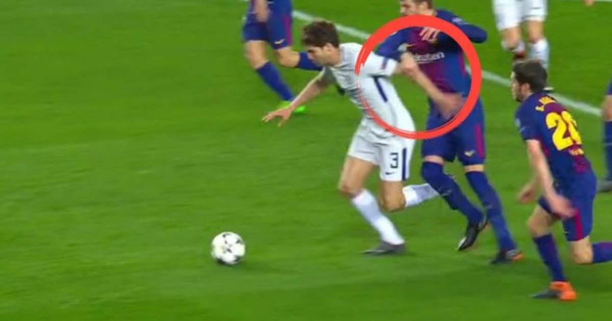 Corría el minuto 49 cuando Marcos Alonso pidió penal por un agarrón de Gerard Piqué, que a primera vista parecía muy clara.