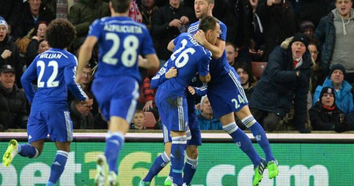 Chelsea: Courtois; Ivanovic, Cahill, Terry, Azpilicueta; Mikel, Matic; Willian, Fábregas, Hazard y Diego Costa.