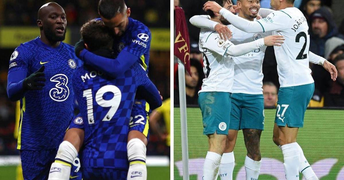 Chelsea (1º), que ganó 2-1 al Watford (17º), Manchester City (2º), que venció 2-1 al Aston Villa (13º) y el Liverpool (2º), que derrotó 4-1 al Everton (14º), cumplieron este miércoles y siguen separados por dos puntos en su cerrada pelea por el título.