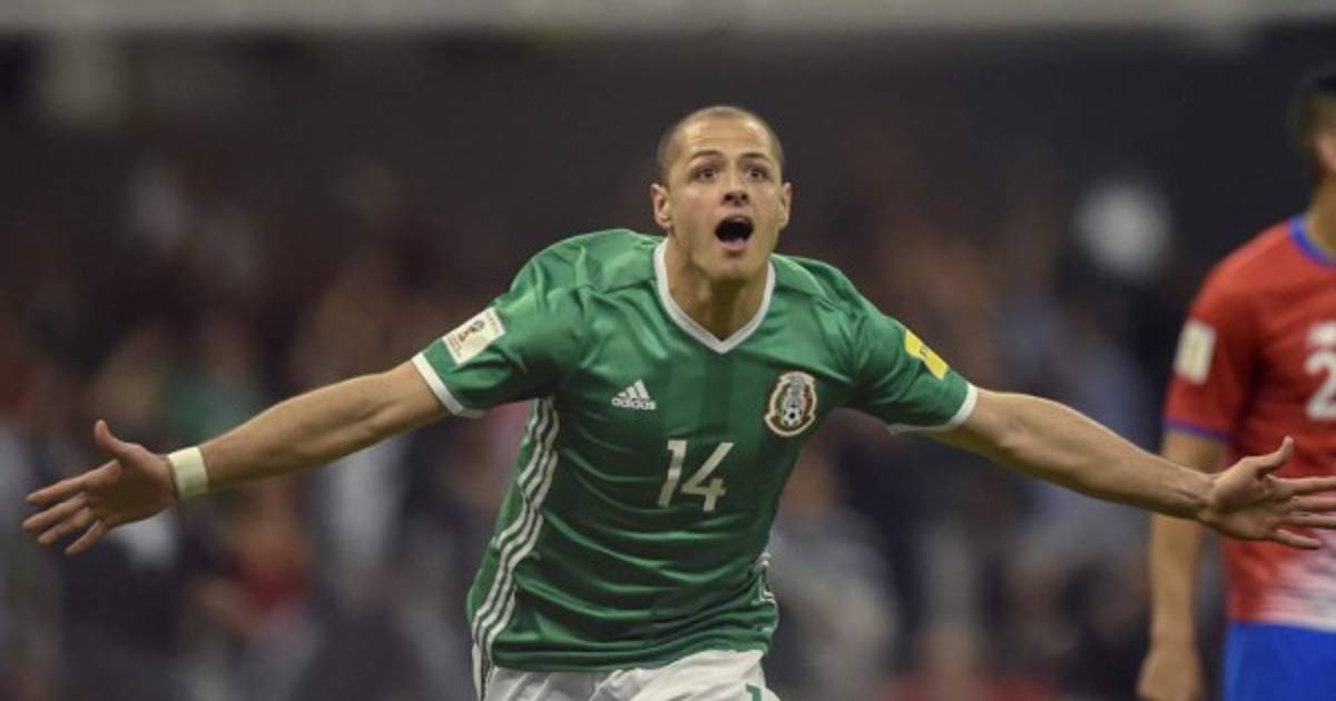 Chicharito al momento de anotar el primer gol.