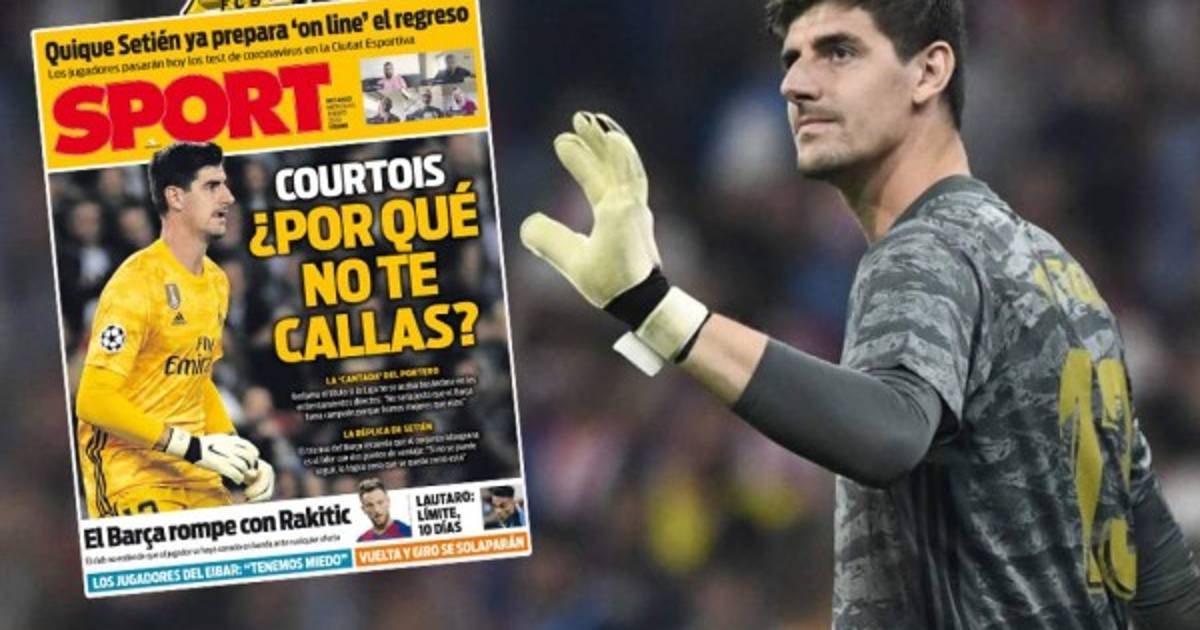 ''Courtois, ¿Por qué no te callas?'', fue el titular del reconocido diario y señaló de ''cantada'' sus explicaciones, ya que considera que el Madrid ha sido mejor que el Barça, aunque en la tabla de posiciones no lo demuestre.