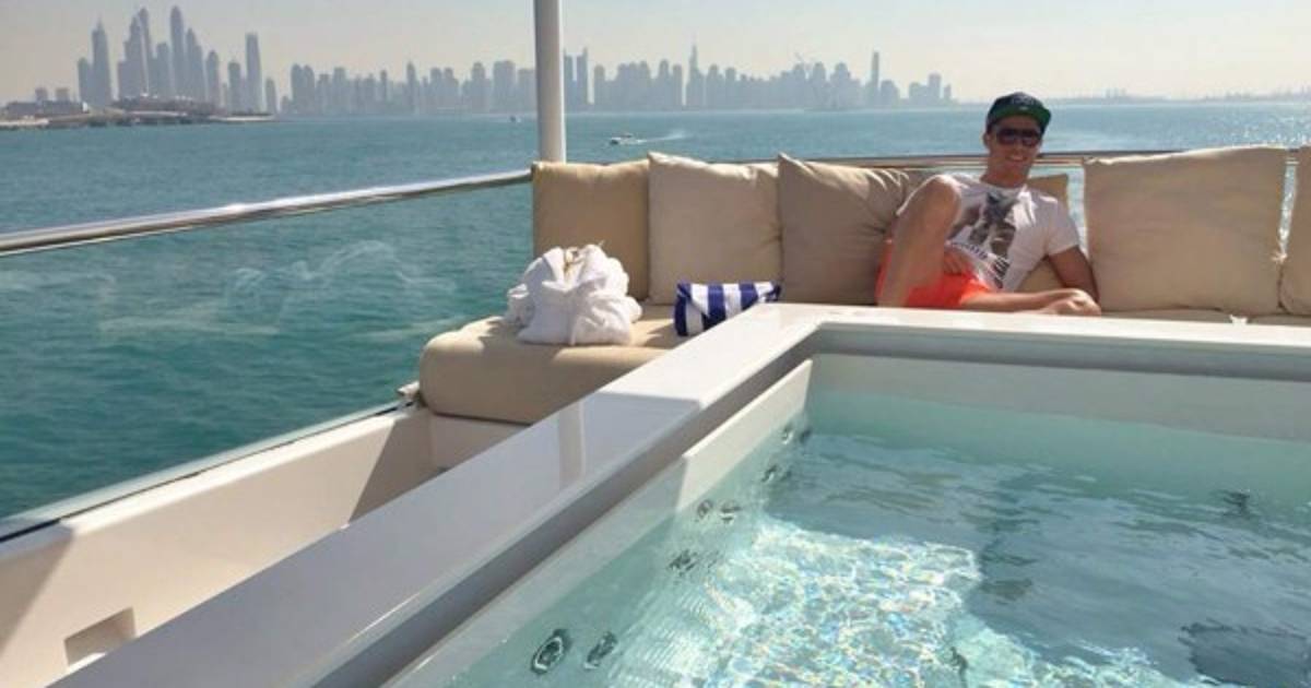 El delantero compartió en redes sociales una fotografía en un yate 'Pasando un buen tiempo en Dubai', escribió.