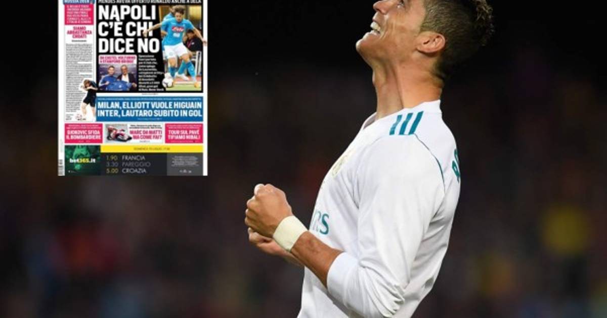 El diario Corriere dello Sport titula en su portada este domingo que Nápoles rechazó al jugador portugués y luego se lo ofrecieron a la Juventus.