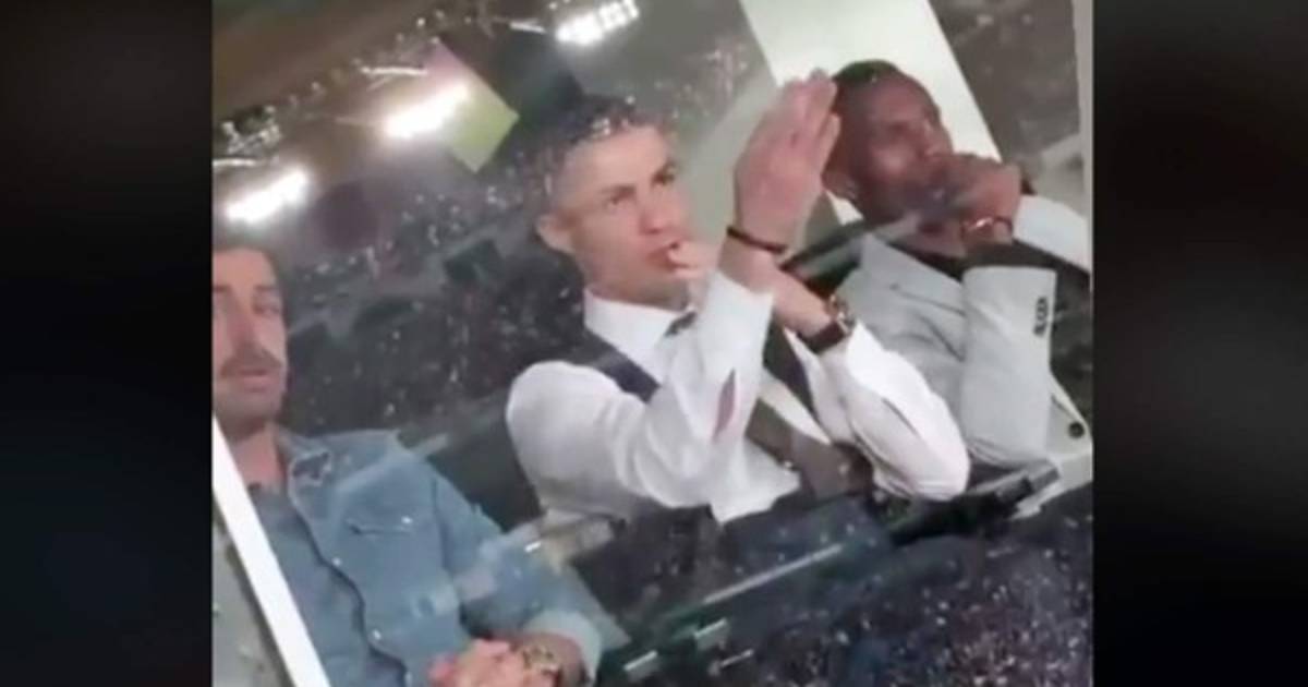 Pero mientras miraba el partido, los camarógrafos y la afición estaba encima del Cristiano, y querían ver qué es lo que hacía.
