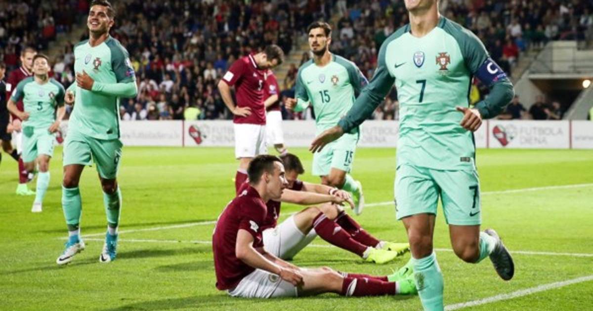 CR7 marcó el 1-0 y 2-0 de Portugal que está ganando 3-0 a Letonia jugando de visita. El primer tanto llegó a 41 y en el segundo tiempo también de cabeza marcó el segundo al 63, André Silva ha complementado la goleada de 3-0 al 67.