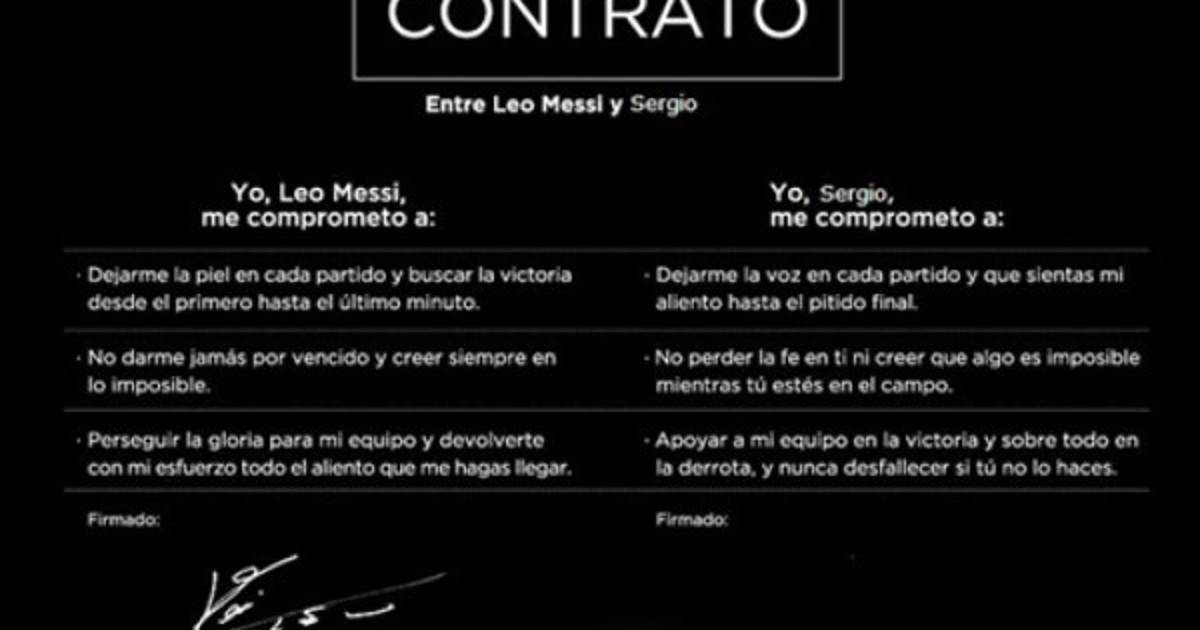 Messi publicó en su cuenta de Facebook: “Con alegría enorme después de firmar mi nuevo contrato en el FCB… Ahora es tiempo de firmar uno con todos ustedes, ¿te animas?”