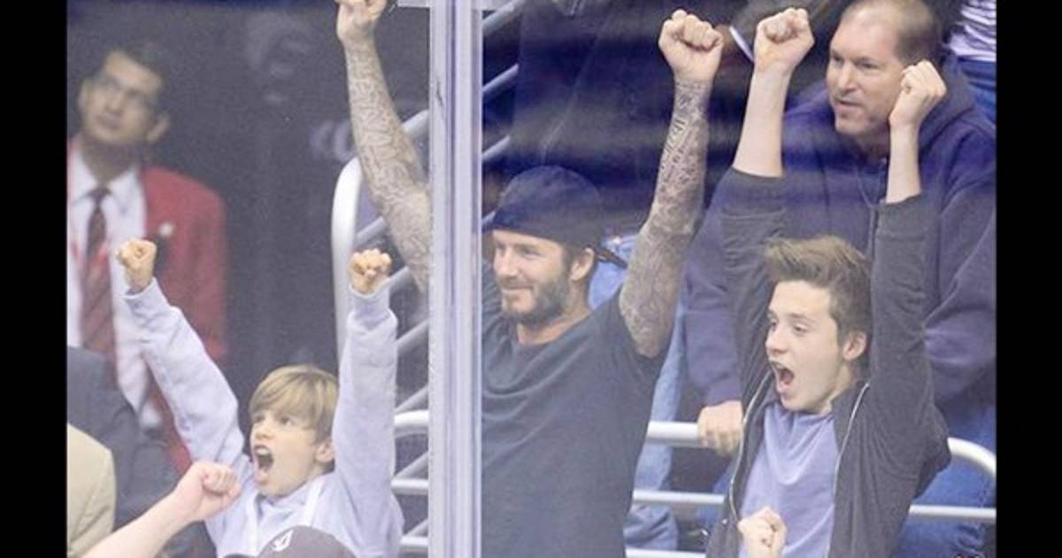 El ex Real Madrid, AC Milan y Manchester United asistió al duelo de playoffs de Los Ángeles Kings contra los Chicago Blackhawks acompañado de sus tres hijos.