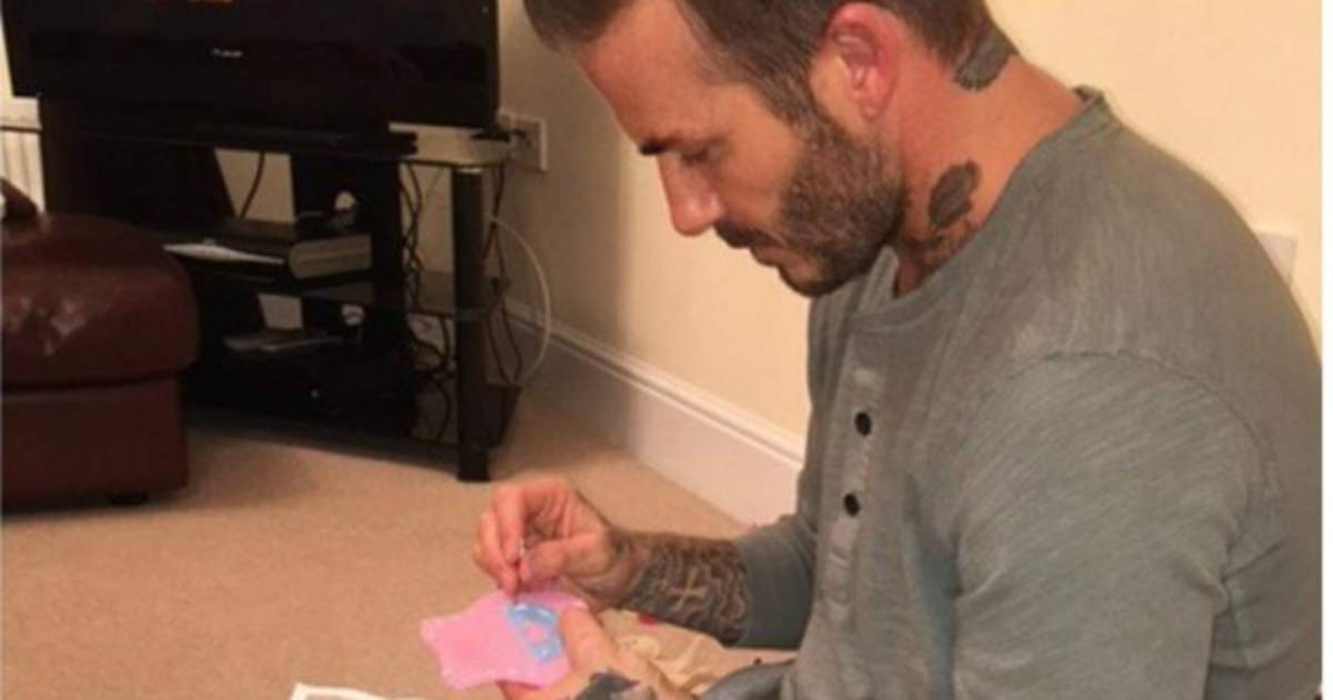 '¡Harper tiene a papi dando puntadas a los vestidos de sus muñecas! Te amamos', escribió la ex integrante de las Spice Girls junto a la tierna foto.