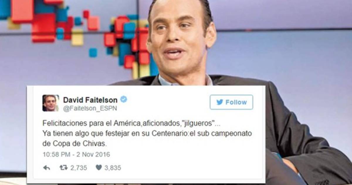 El presentador David Faitelson de la cadena ESPN encendió las redes sociales al enviar comentarios de burla y sarcasmo a los aficionados del América.
