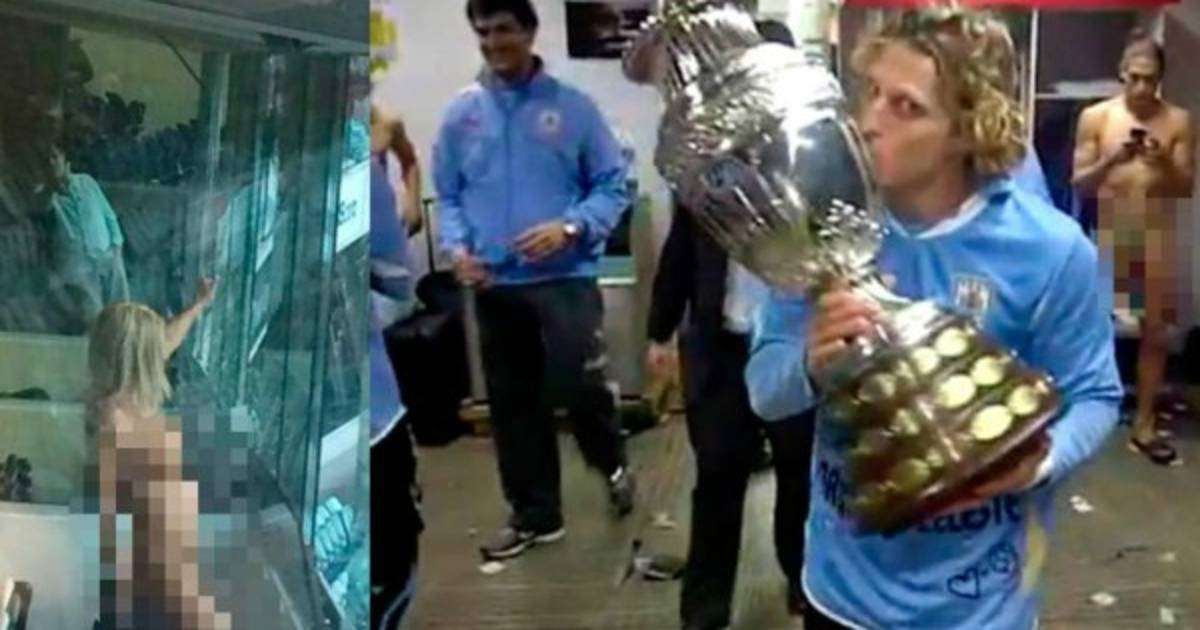 3. Cuando Uruguay ganó la Copa América en 2011, Diego Forlán colgó en internet un vídeo en el vestuario en el que se le ve besando el trofeo y, en segundo plano, Martín Cáceres lució como Dios lo trajo al mundo. Forlán retiró en seguida el vídeo al darse cuenta.