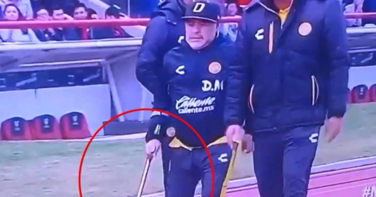 Las imágenes que se apreciaban a través de la televisión mexicana se observó al exídolo del fútbol argentino apoyarse en un bastón, acompañado y asistido por el también mundialista argentino Luis Islas.