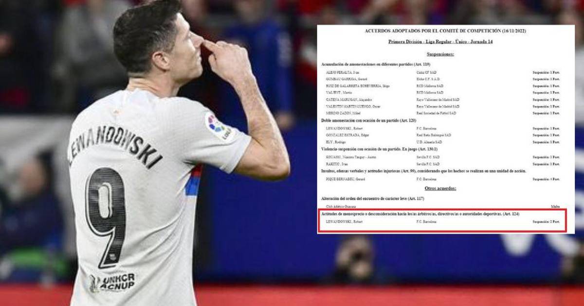 Ahora se han conocido las sanciones a cada uno de ellos: tres partidos de sanción a Lewandowski y cuatro a Piqué. Al delantero le ponen esta cantidad de partido por “menosprecio o desconsideración hacia los árbitros (artículo 124)”.