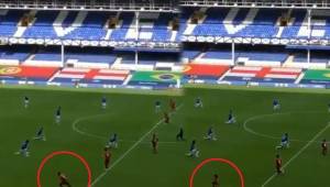 Justo allí terminó apareciendo Vranckx quien instantes después, lamentablemente no pudo meter el balón al pisar sobre ella cayéndose al suelo, solo frente a la portería.